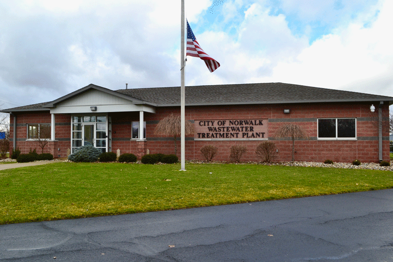 Image: Norwalk Water Treatment Plant Building and Water Tower.